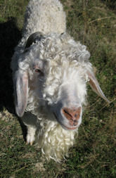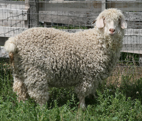 Bugsy (Cream/apricot) Fleece is off white. Registered with Colored Angora Goat Breeders Association. Friendly. Loves peanuts and apples.
